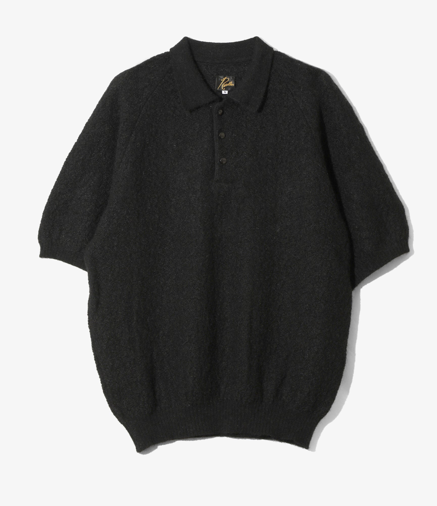 S/S Polo Sweater - Black - Crepe Weave